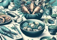 Sajian makanan laut yang disajikan dengan sentuhan estetika, menghadirkan kreasi unik dan menyegarkan. Kombinasi cita rasa dan tampilan artistik menciptakan pengalaman kuliner yang memikat.